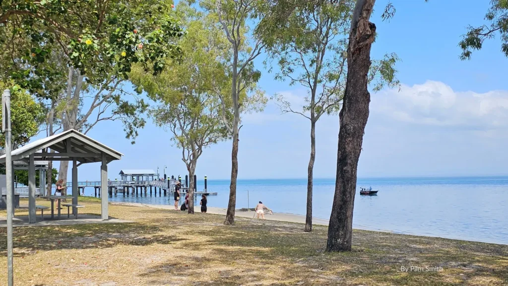 It’s on the calm side or passage side so there are never waves which is great for the grand kids to have a paddle or do some fishing with grandad and if they don’t catch anything there are shops close by. Always have a nice time.