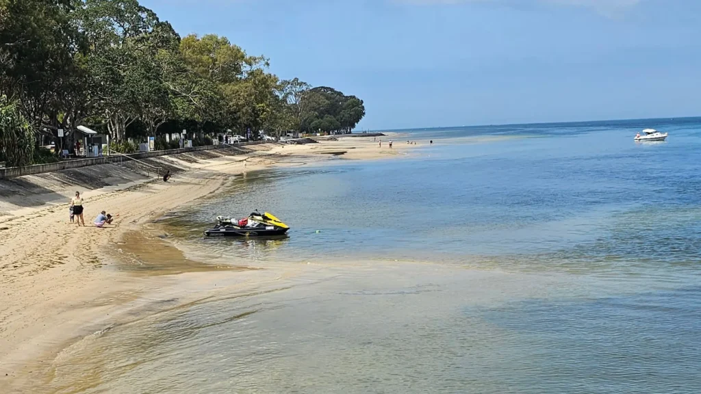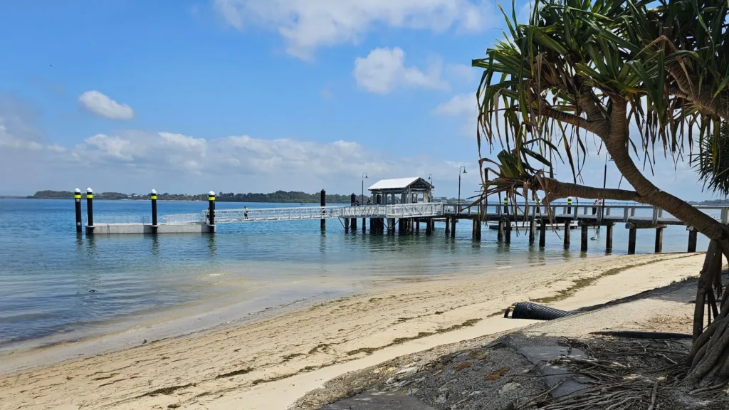 Bongaree Beach on Bribie Island, Queensland is a calm, sandy beach located on the island’s western foreshore, facing the sheltered waters of Pumicestone Passage. Known for its gentle waves, shady trees, and family-friendly facilities, it is one of the most popular Bribie Island beaches for both locals and visitors. With its iconic jetty, safe swimming areas, and nearby cafes, Bongaree Beach is perfect for families, couples, and day-trippers looking for a relaxed coastal escape just over an hour from Brisbane.