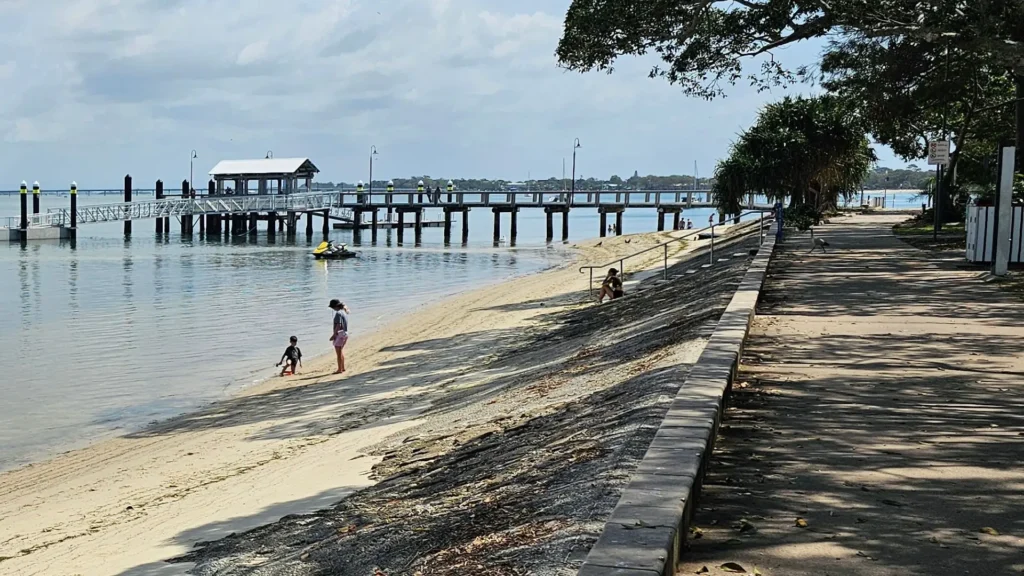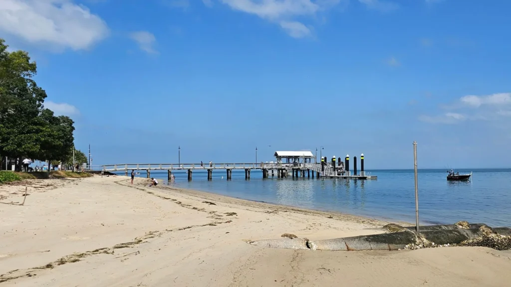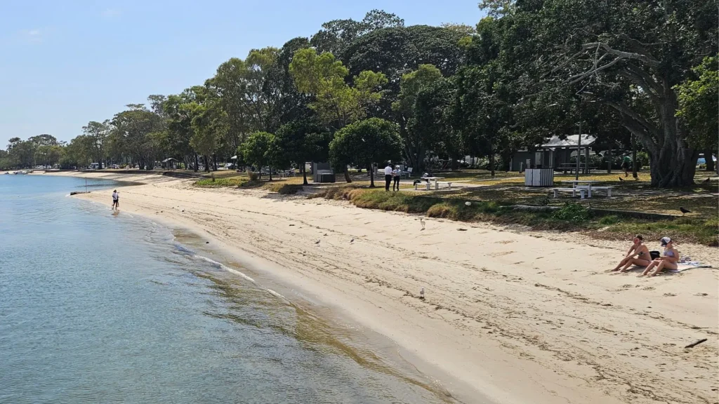Bongaree Beach on Bribie Island, Queensland is one of the most popular family beaches on the island, located along the western foreshore of Pumicestone Passage. Known for its calm, sandy shoreline, shady parklands, and safe swimming areas, Bongaree is a favourite spot for locals and day-trippers from Brisbane. With its iconic jetty, children’s playgrounds, and plenty of nearby cafes and shops, it offers the perfect balance of relaxation and convenience.