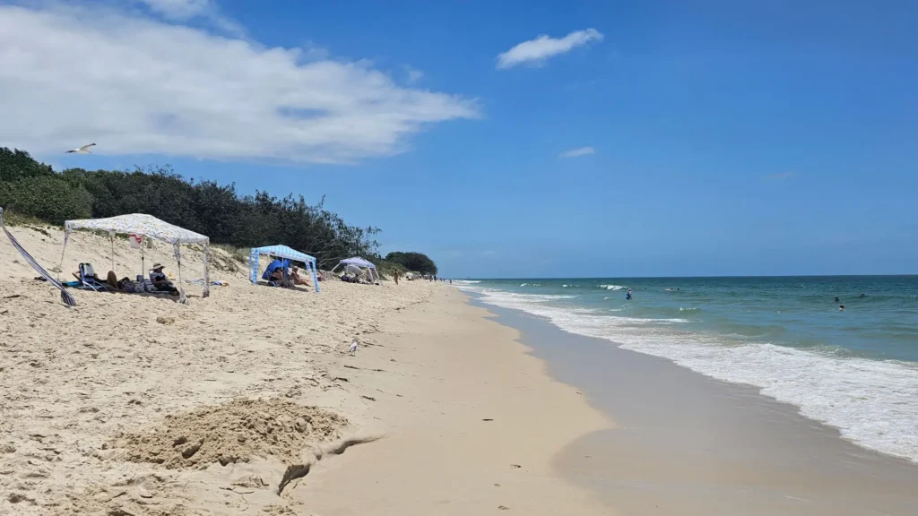 Woorim Beach on Bribie Island, Queensland is the island’s main surf beach, located on the eastern shoreline and facing the open Pacific Ocean. Known for its consistent waves, golden sands, and patrolled swimming areas, it is the most popular spot for surfers and beachgoers seeking an oceanfront experience. With picnic areas, BBQs, cafes nearby, and a dog-friendly stretch, Woorim Beach is a favourite day-trip destination for families, surfers, and holidaymakers travelling from Brisbane and the Sunshine Coast.