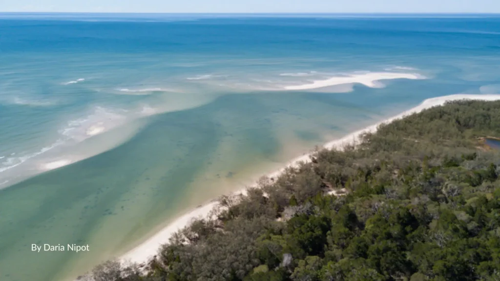 ๐ŸŒ… Woodgate Beach stretches for nearly 16 km of soft golden sand, perfect for long walks and quiet swimming.