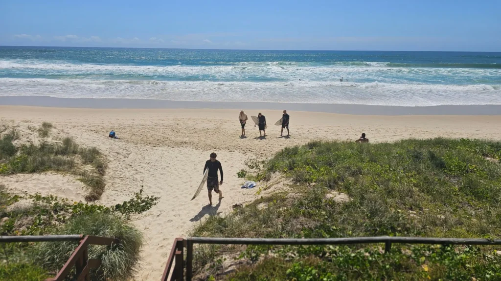 - 🏄 Surfing Season: Surfable year-round, with peak swells between November and March. Nobby Beach’s sandbanks produce steady, medium-sized waves great for intermediate surfers, while nearby Miami Beach and Mermaid Beach offer slightly larger breaks.