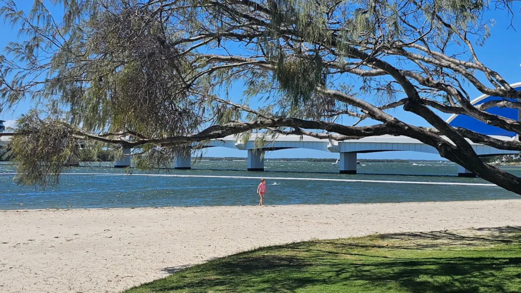 A perfect spot for calm Broadwater relaxation, family play, and easy Gold Coast vibes. Whether swimming safely, BBQing with friends, letting kids burn energy, or walking the dog — it’s all here in one scenic foreshore spot.