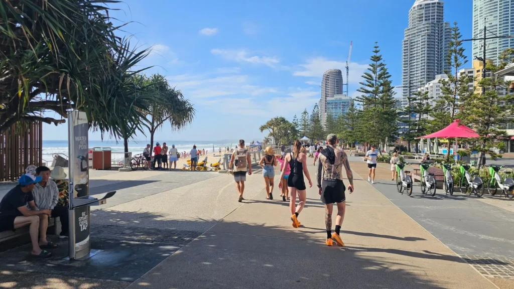 🚗 Driving: Surfers Paradise is the heart of the Gold Coast, around 25 minutes north of the Gold Coast Airport via the Gold Coast Highway or M1 exit 66. Main access points are along The Esplanade, with several signed pathways leading directly to the beach between Cavill Avenue and Hanlan Street.
