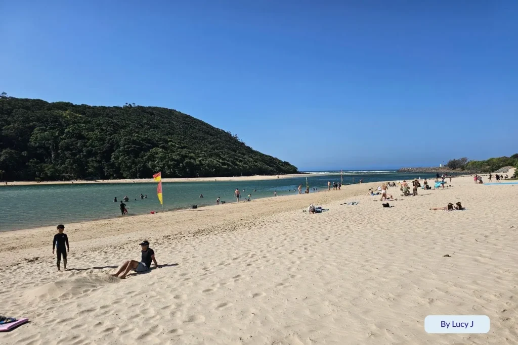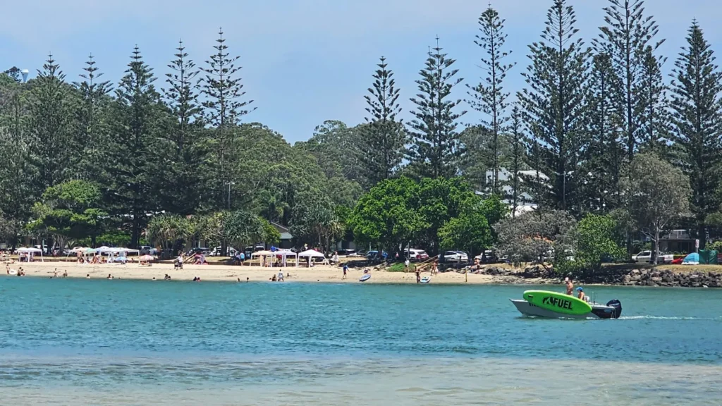 🌴 Tallebudgera Creek Beach is one of the Gold Coast’s most family-friendly spots, with clear turquoise water, soft sand, and no surf waves, making it perfect for swimming, kayaking, and paddleboarding.