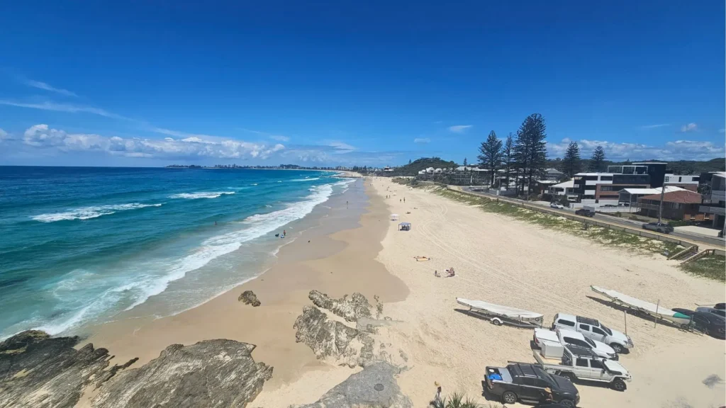 Tugun Beach offers a laid-back, coastal village feel with wide sandy shores and gentle surf. Less crowded than nearby Gold Coast hotspots, it’s a great choice for locals and visitors seeking relaxation. With patrolled swimming areas, nearby cafés, and dog-friendly sections, Tugun balances convenience with natural beauty.