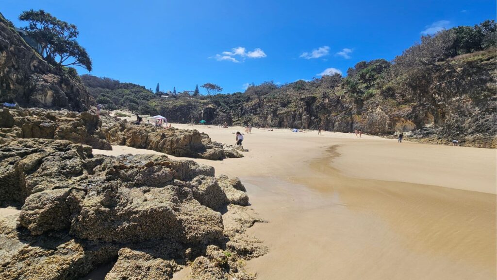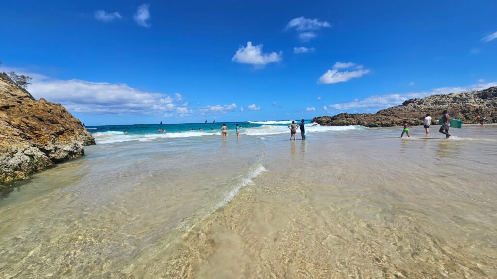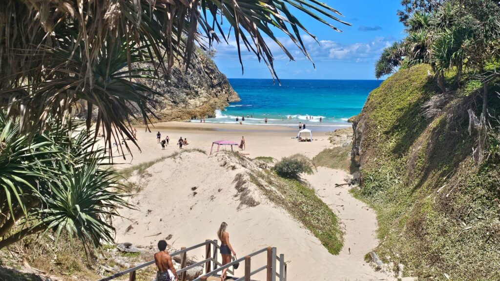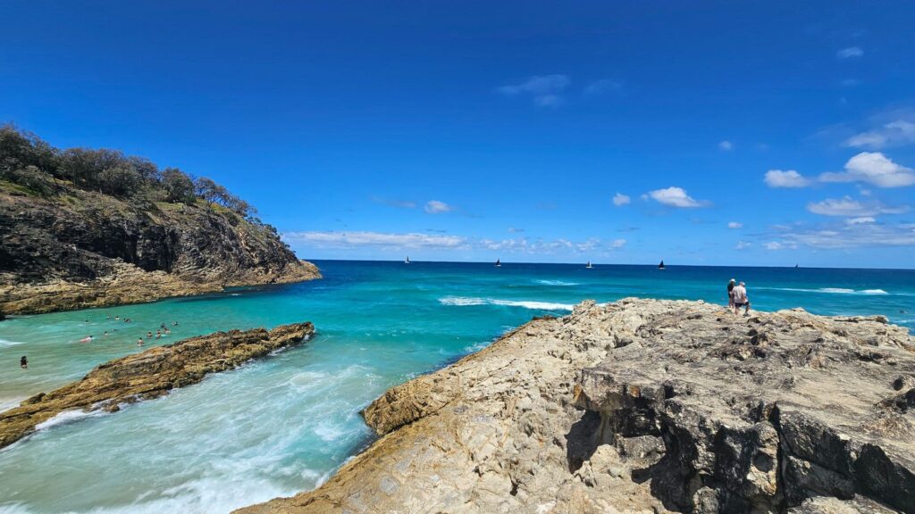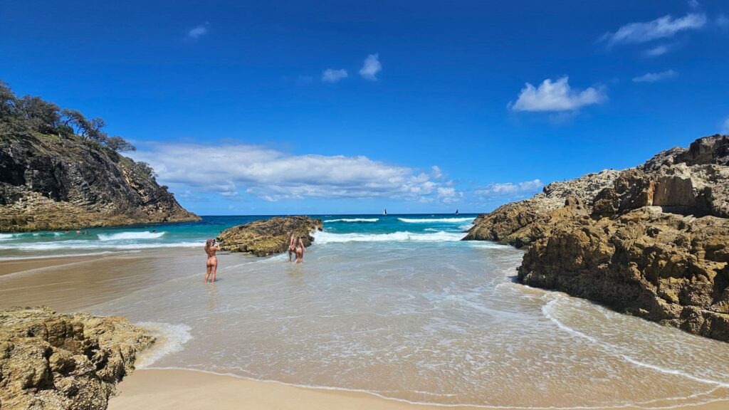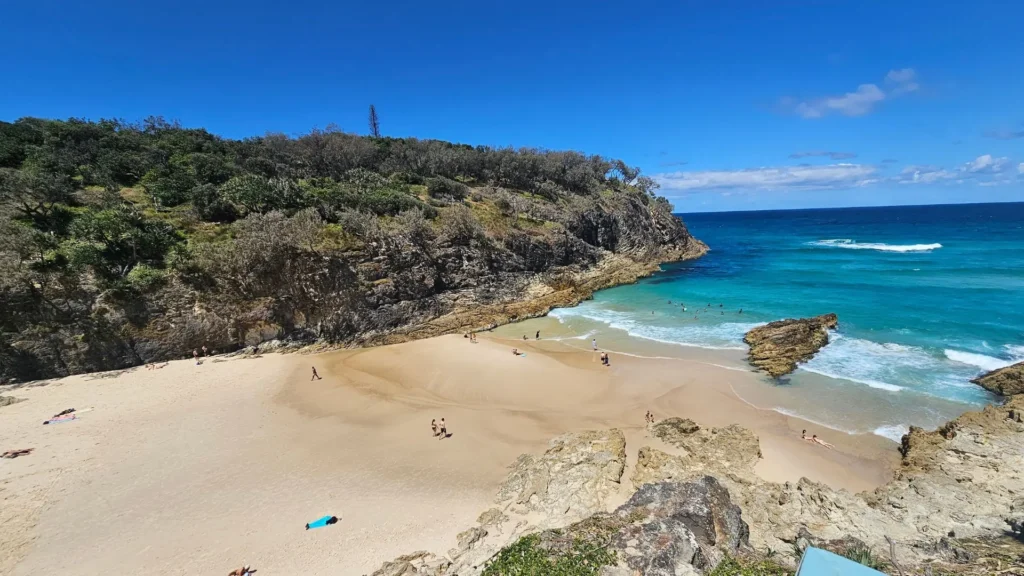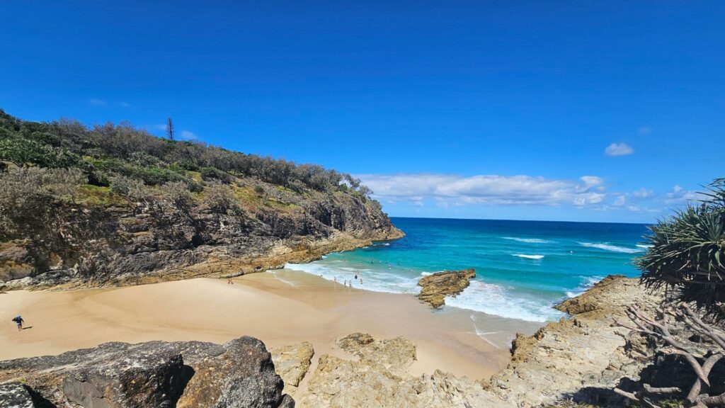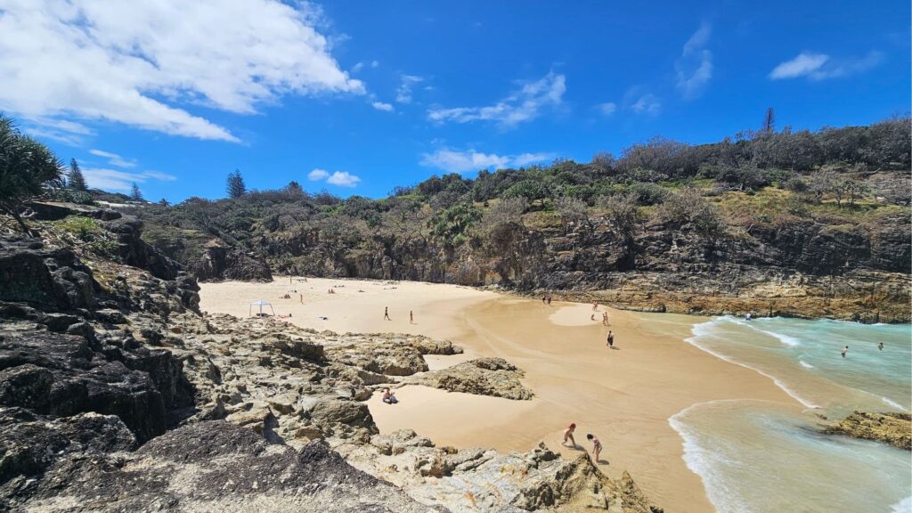 South Gorge Beach, nestled between two rocky headlands at Point Lookout on North Stradbroke Island, is a small yet stunning cove famous for its crystal-clear water and calm surf. Sheltered from strong winds and open swells, it’s one of the safest beaches on Straddie for swimming, snorkelling, and relaxing by the sea. With soft golden sand, turquoise shallows, and spectacular cliffs surrounding the bay, South Gorge Beach offers a perfect mix of natural beauty and tranquility — a true hidden gem steps away from Point Lookout village.