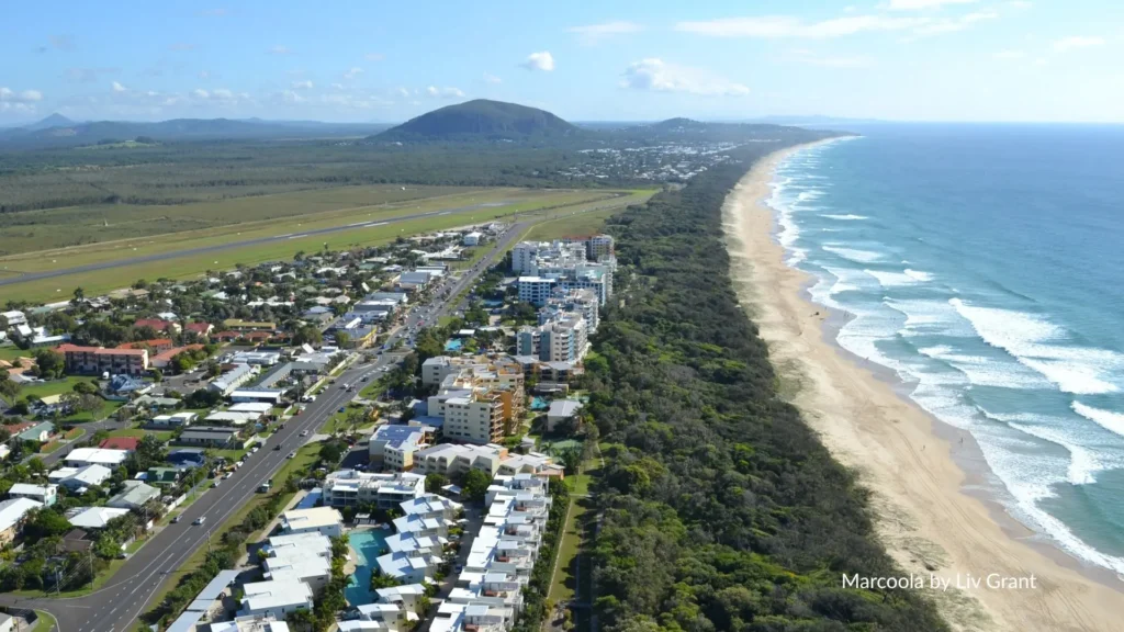 Marcoola Beach, located on the Sunshine Coast, is a peaceful coastal retreat known for its wide golden sands, gentle dunes, and relaxed, uncrowded atmosphere. Itโs the perfect spot for those seeking a more tranquil beach experience away from busier hubs like Coolum or Maroochydore.