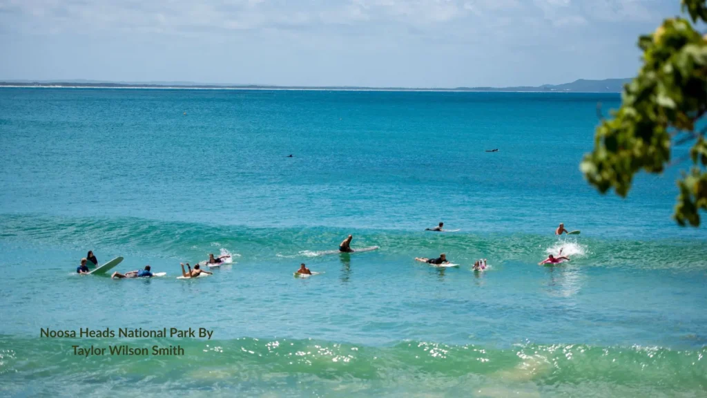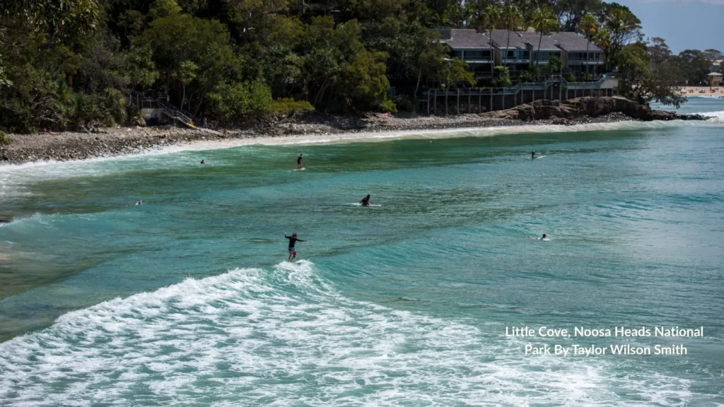 - Noosa Heads (First Point / Tea Tree / National Park / Granite Bay / Johnsons) — Iconic right-hand point breaks in the national park. Long, peeling walls with clean faces — First Point for beginners/intermediates (mellow, long rides); Tea Tree/National Park for advanced (faster, hollower sections). Consistent on NE summer swells; world-class but crowded on good days. Scenic walks, patrolled nearby. 🌿