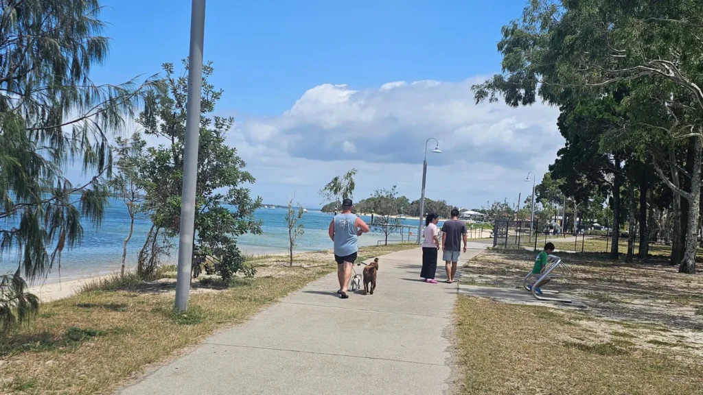 Living here is great, We take the dogs out everyday for a walk and sometimes they swim here. Its good for families and older people. Weather is always nice and the water is always calm.
