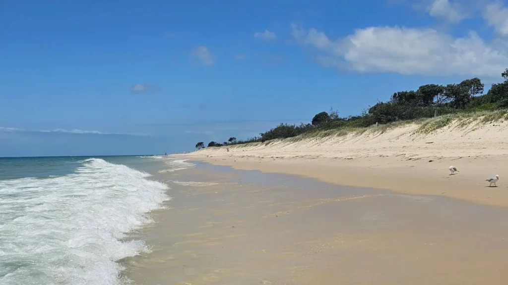 On a cold winters day the beach is still beautiful at Bribie. Clear blue skies, can’t swim but its still great for a walk.